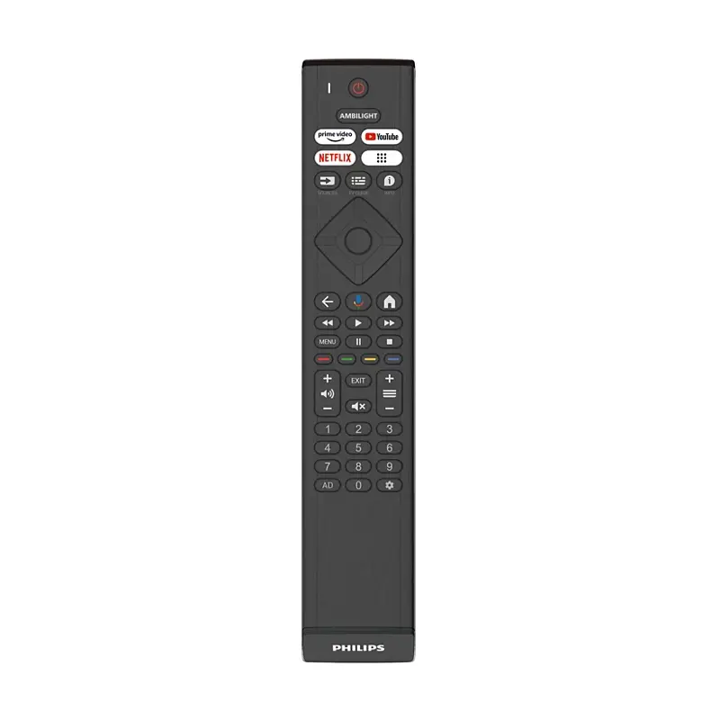 ریموت کنترل مدرن و خوشدست، با دکمههای میانبر برای سرویسهای استریم و امکانات هوشمند، تجربه کاربری را بسیار ساده میکند.امکان کنترل تلویزیون از طریق اپلیکیشن Philips TV Remote روی گوشی موبایل، مدیریت و استفاده روزانه را راحتتر و حرفهایتر ساخته است.