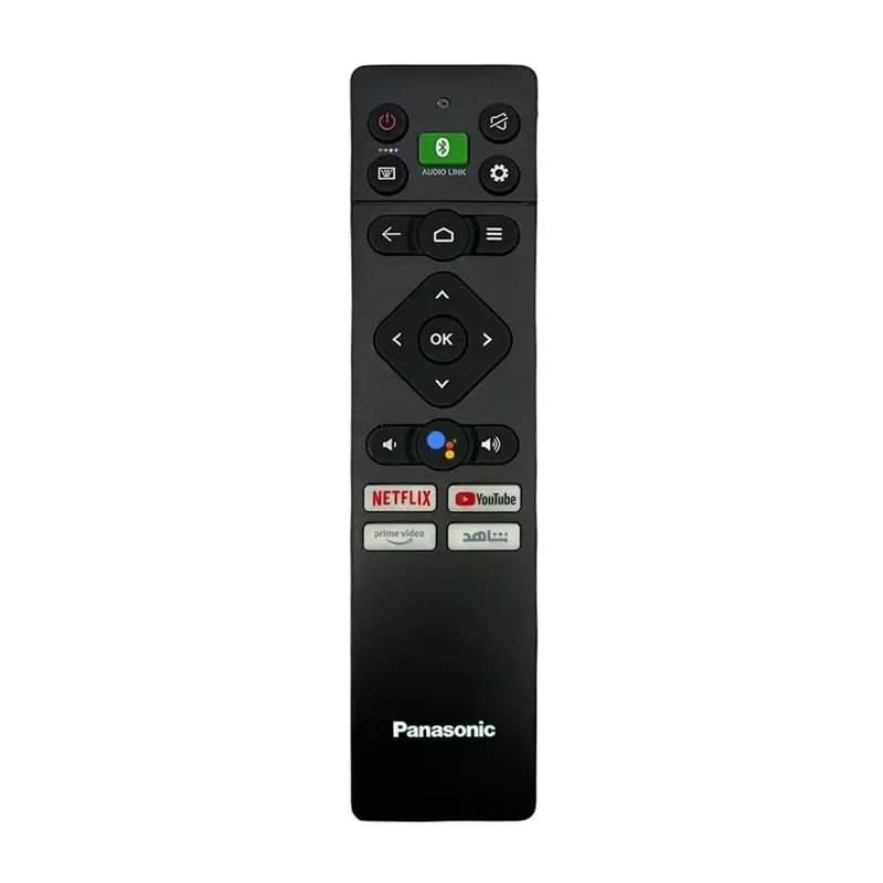 ریموت کنترل این تلویزیون با طراحی ارگونومیک، دکمههای نرم و میکروفون داخلی، امکان جستجوی صوتی، دسترسی سریع به اپلیکیشنها و کنترل راحت تمام قابلیتهای تلویزیون را فراهم میکند. کلیدهای میانبر برای برنامههای محبوب مانند YouTube و Netflix روی ریموت تعبیه شده است.